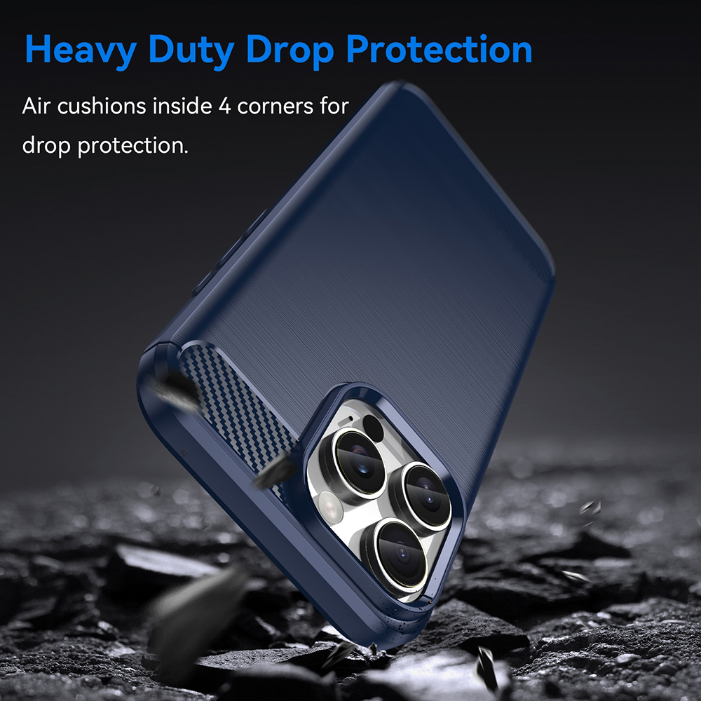 Тъмносиният цвят придава стилна и модерна визия на телефона, а карбоновият ефект на гърба допринася за по-добро сцепление в ръката. Това прави калъфа удобен за ежедневно използване, като същевременно запазва елегантния външен вид на смартфона. Тънкият профил на защитния кейс позволява телефонът да остане компактен и лесен за носене в джоб или чанта.